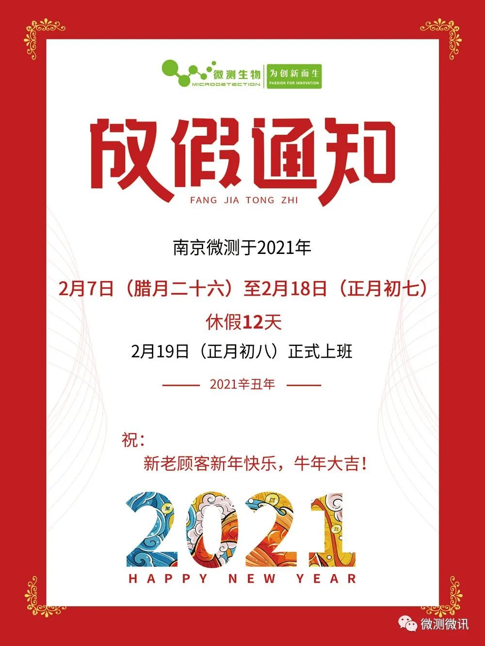 南京微測丨2021年春節(jié)放假通知!